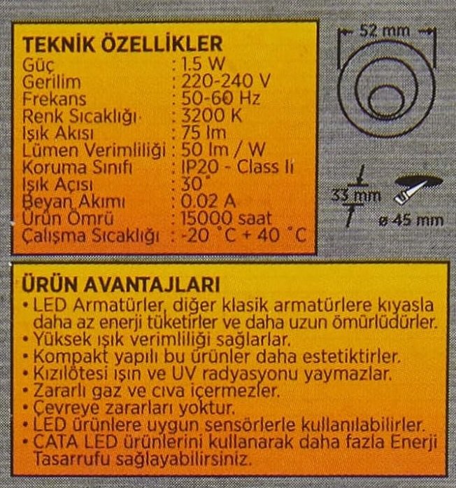 CATA CATA 1,5W Günışığı 3200K POWER LED UFO SPOT CT5268G
