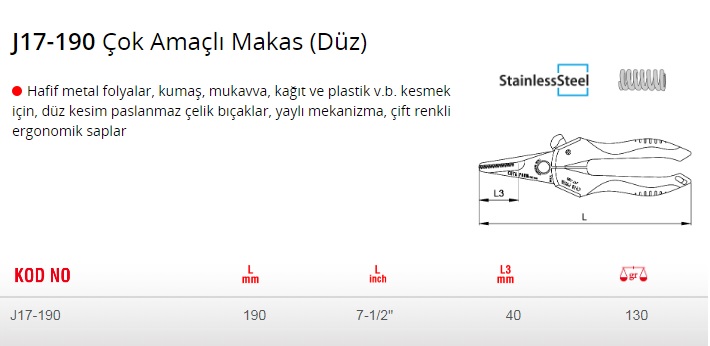 Ceta Form J17-190 Çok Amaçlı Makas Düz