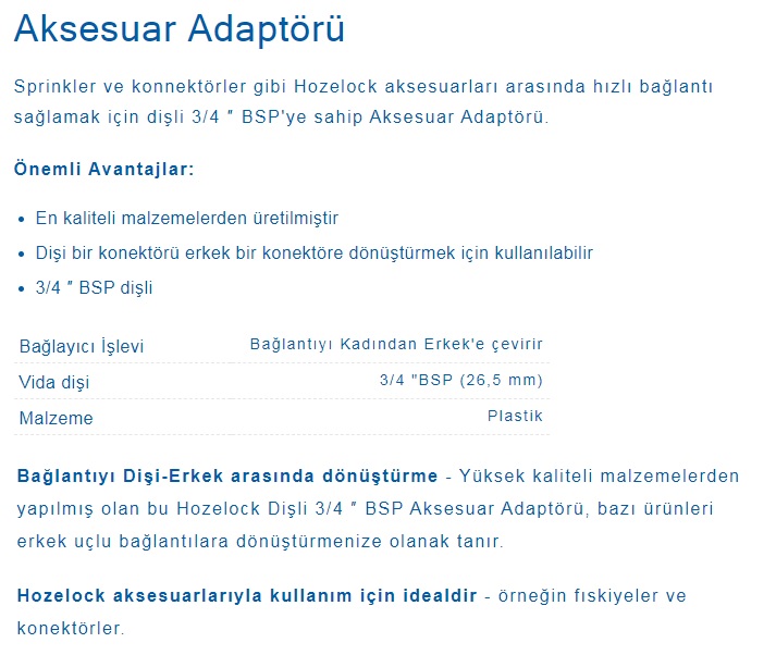 Hozelock 2289H Erkek Adaptör 3/4"