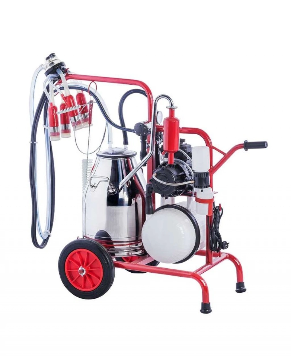 Kurtsan Çift Sağım Tek Güğüm Arabalı Süt Sağım Makinesi (Yağlı Sistem - Silikon Memelikli 300 cc) - KM04097