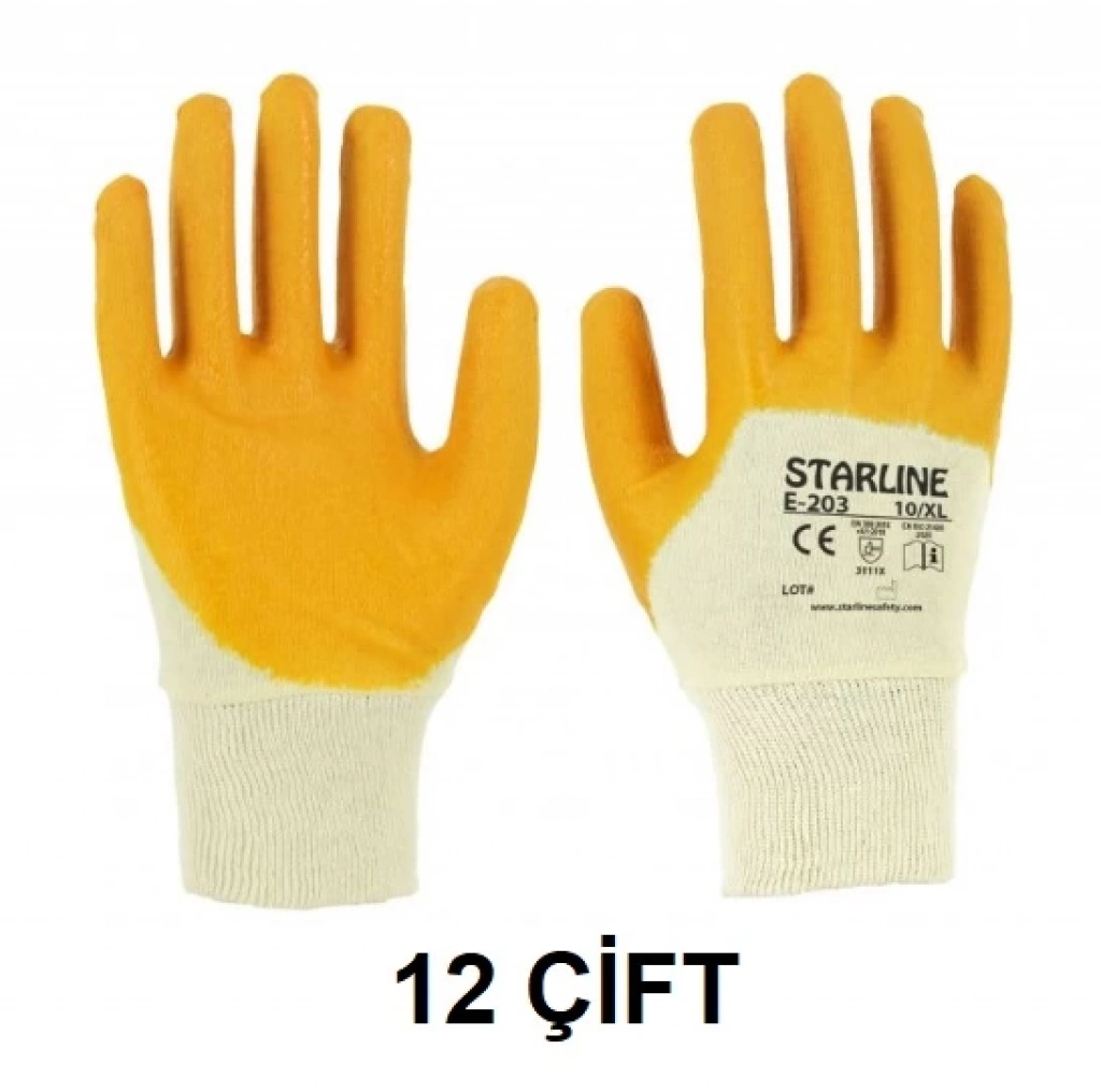 Bu eldivenler kuru veya ıslak ortamlarda nesneleri tutmak için güçlü kavrama özelliklerine sahiptir. Sahip olduğu pamuk astarı sayesinde daha konforlu ve dayanıklıdır. Sarı nitril kaplaması sayesinde de sıvı geçirmezliği ve üstün özellikler sunmaktadır. ¾ kaplaması sayesinde ellerin hava almasına imkan verilir.